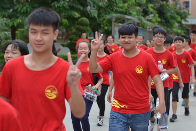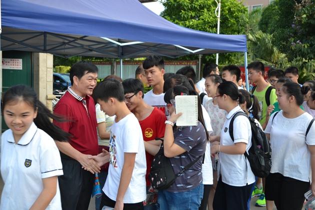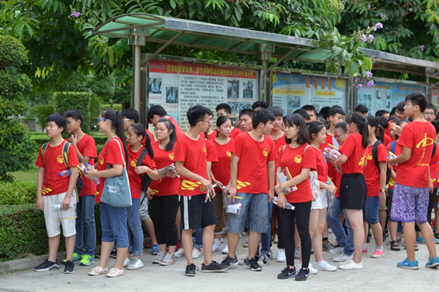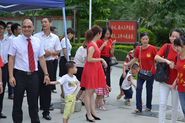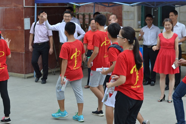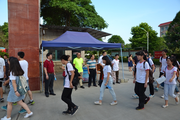 2016年6月24日8点08分,南宁三中平果分校初三年级师生在校门口集合,准备前往中考考场。今天是中考开考的日子,一大清早,初三年级全体师生在校门口整装待发,杨敏校长、高文广常务副校长和黄春彬副校长等领导以及初三年级全体老师,都站在校道欢送学生去参加考试。在学校领导和班主任的指挥下,学生们斗志昂扬地走出校门,有序地坐上学校包的公车,前往平果实验初中参考。