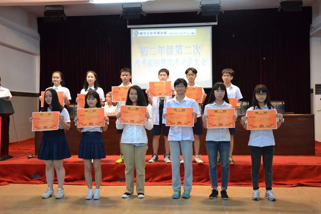 首先是进步学生代表发言。进步学生代表上台分享了他们的学习方法和心得体会,不约而同地都提及复习的重要性,让同学们学习借鉴。第二项内容是为本次月考中表现优异的班级和个人颁奖以资鼓励,由黄海慧老师主持颁奖,阮国辉主任、年级组长彭玲玲老师、副组长李贤伟老师及各位老师为学生颁奖。最后,阮国辉主任进行总结讲话,肯定了此次考试的成果,对取得优异成绩的同学进行了表扬,并鼓励全体同学“温故而知新”,认真学习之后还要好好复习所学知识,发扬积极上、勤奋好学的精神,为即将到来的期中考试做好准备,努力取得更好的成绩。