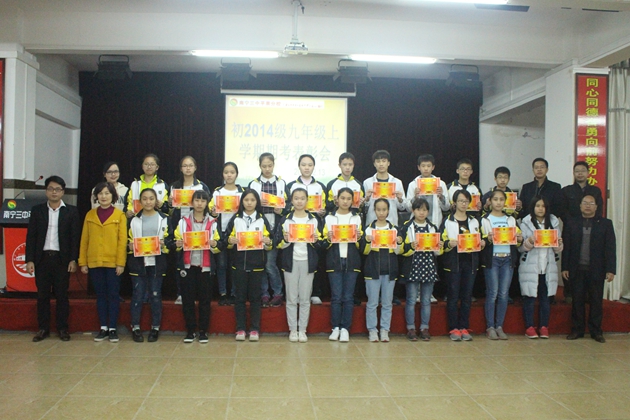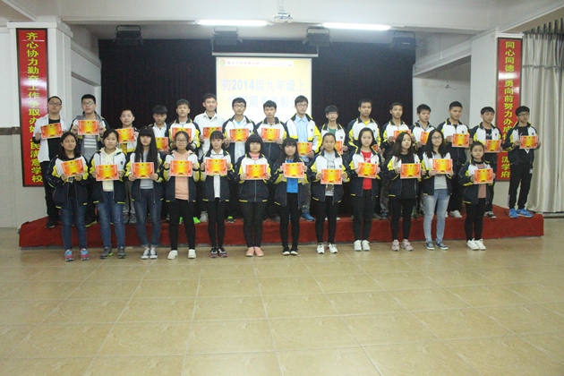 2月13日晚,初2014级全体师生在学校报告厅召开九年级上学期期末考试总结表彰会。杨敏校长、黄春彬副校长、张军副主任出席本次会议。