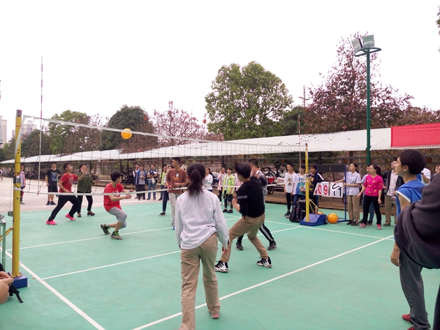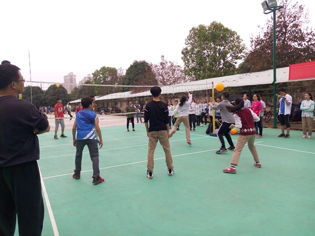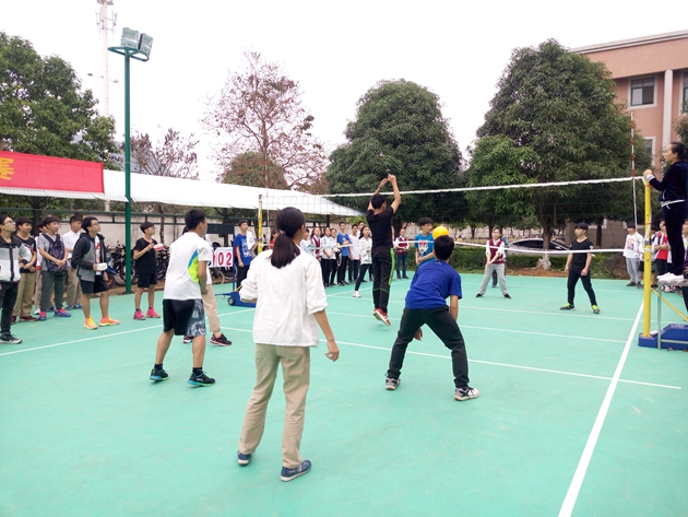 当天,12个班级分AB组,采用循环制分别进行比赛。场上运动员配合默契,场下拉拉队呐喊助威,整个赛场激情洋溢、呼声不断。这次排球赛不仅是一项娱乐活动,更增强了学生间的友谊,使得班级内相处更融洽,各班之间交流更和谐。希望各班在接下来的几天比赛中能尽显青春活力,勇创佳绩。