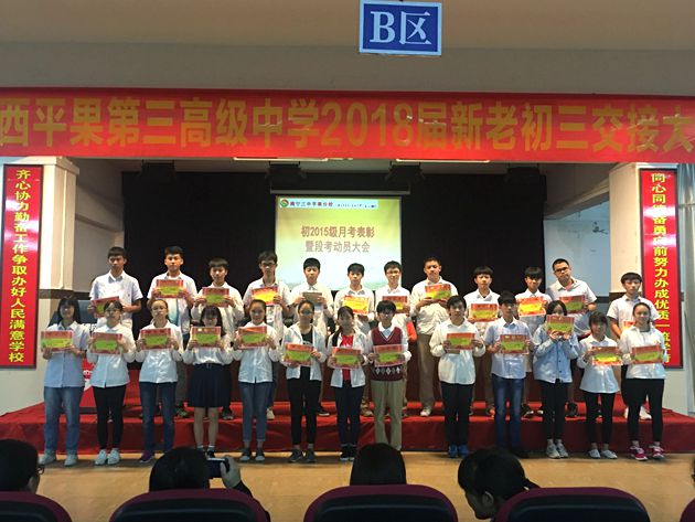 大会第四项,老师们为月考中获得成绩优秀奖、三等奖、二等奖、一等奖的同学颁奖。