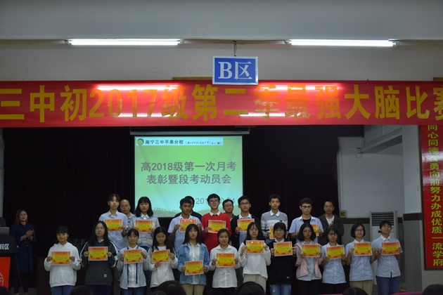 第一项议程,由李生华老师公布,在高2018级高二上学期开学考和月考中,表现优异的同学名单,并请在座各位科任老师为获奖学生颁奖。