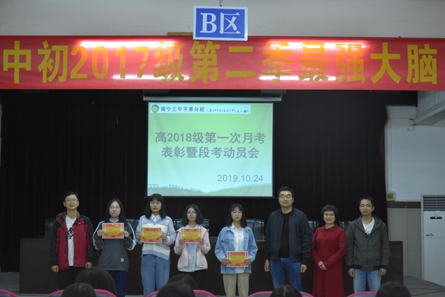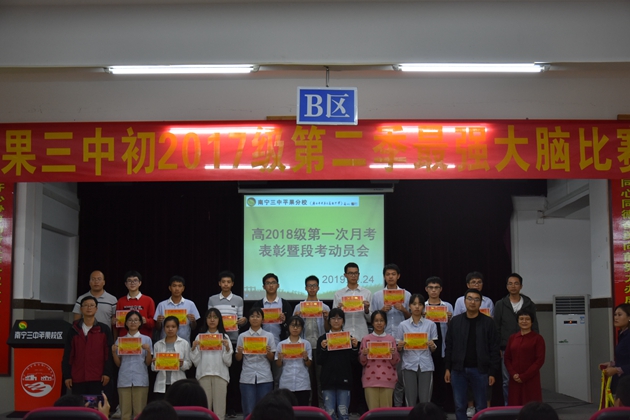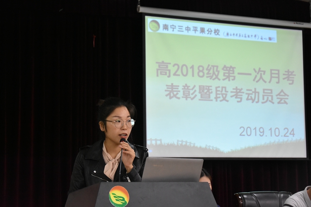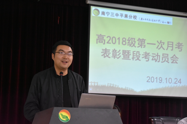 总结是进步的基础。为进一步提升学生的自我认识,促进学生在学习生活得到发展,2019年10月24日星期五19:30,高2018级年级组在报告厅召开了“广西18luck娱乐高2018级第一次月考总结暨段考动员大会”。会议由班金川老师主持,共有六项议程: