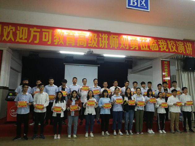 2019年11月10日晚,高三年级在我校学术报告厅召开了高三第一次模拟联考表彰大会。高三年级全体师生出席了此次会议。