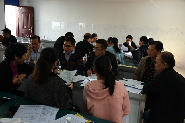 说课、模拟上课环节结束后,参加活动的老师分成三组对展示老师的教学设计、说课、模拟上课等环节进行分析讨论,然后由各小组代表、陈淑兰教研员、范永荣督导分别对展示老师的表现进行了点评,并一一提出了宝贵的意见。最后由平果第三高级中学黄琪老师对我校政治组日常的教育教学工作做介绍。