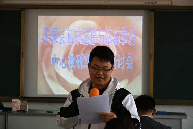 2019年11月15日上午8点40分,平果县初中道德与法治学科中心教研组教学研讨活动在18luck娱乐综合楼多媒体教室举行。