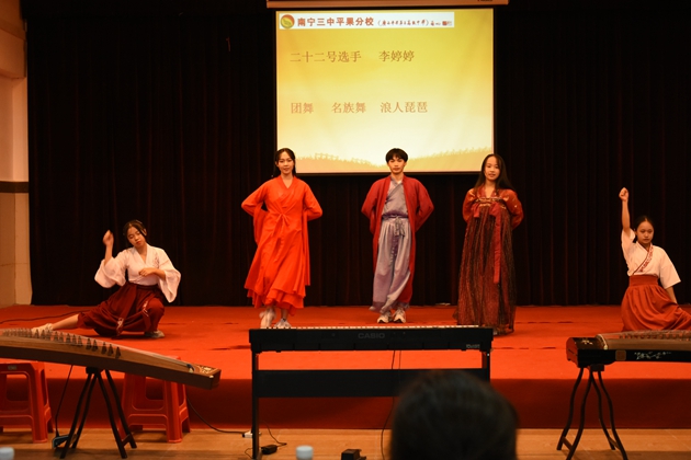 本次比赛共有二十三个参赛节目。一曲《琵琶语》的古筝伴舞拉开了比赛的帷幕,一支爵士舞《Breath》带动了全场的气氛;一首诗朗诵《祖国啊!我亲爱的祖国》点燃了在场观众的爱国情怀;接下来潇洒律动的架子鼓、俏皮可爱的爵士舞、流畅悦耳的钢琴演奏、柔中带刚的拉丁舞、动感十足的街舞等等都赢得同学们的阵阵喝彩声;高一(4)班的陆俊成同学满怀深情的演唱了一首《你还要我怎样》获得了雷鸣般的掌声,并获得了本次比赛的最高分。