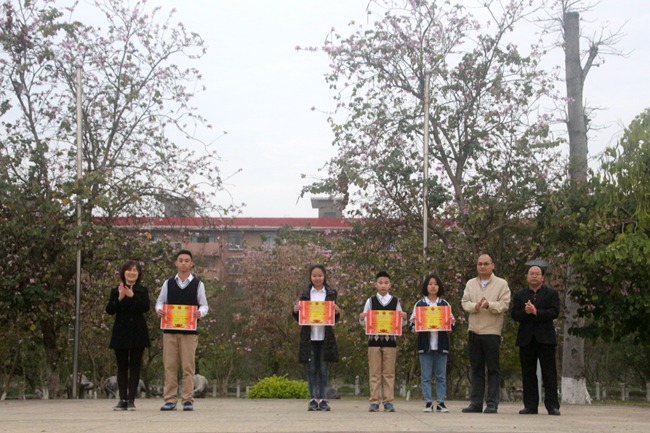 获得本次比赛一等奖的班级是:高一(1)班、初一(3)班、初一(11)班、初一(13)班;获得二等奖的班级是:高一(2)班、高一(3)班、初一(2)班、初一(4)班、初一(7)班、初一(9)班、初一(14)班;获得三等奖的是:高一(4)班、高一(5)班、高一(6)班、初一(1)班、初一(5)班、初一(6)班、初一(8)班、初一(10)班、初一(12)班。学校领导杨敏校长、高文广常务副校长、黄春彬副校长为获奖班级颁发了奖状。至此,第六届桃花节“双语朗诵“比赛圆满落幕。