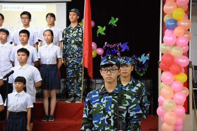 高一年级同学们的合唱表演更具有爱国、爱校、爱班级的集体主义精神,为我们唱出了动人的歌谣:《国家》、《追梦赤子心》、《喀秋莎与最美的太阳串烧》、《三中,展翅高飞》、《打靶归来》、《倔强》。高一的同学们发挥创造力将这一首首歌曲进行了改编,加入了情景剧、舞蹈、诗朗诵、甚至是rap的元素,来表达自己对未来的向往和为梦想努力的态度。