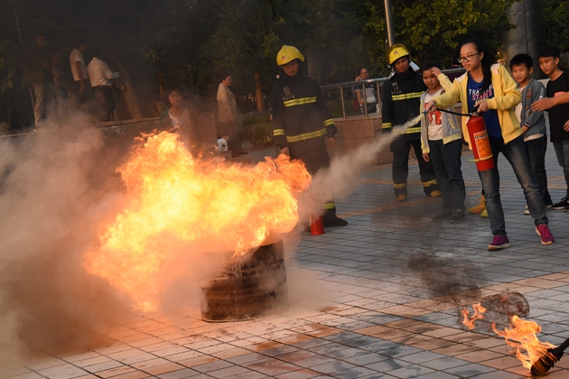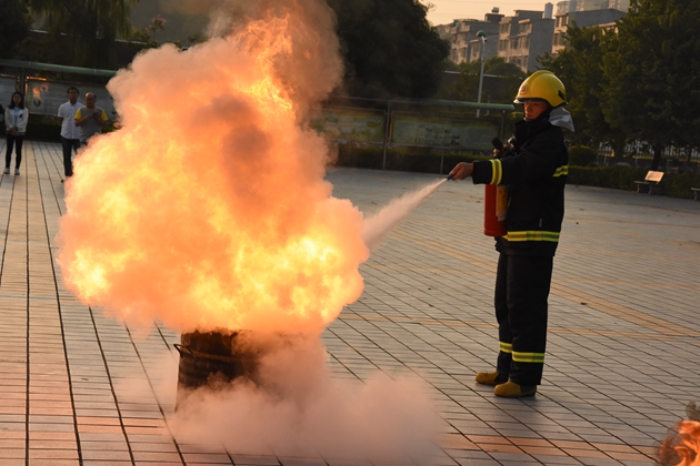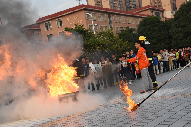 到达操场后,首先由我校党支部书记罗维新老师发言。罗书记对学生们演练的表现表示肯定,并对学生们传授了一些关于地震、火灾时的安全知识,告诉大家灾难来临应保持沉着冷静,在日常生活中也应减少安全隐患,防患于未来。接着由县消防大队赵华明中队长给全校师生讲解一些关于如何灭火的知识,他表示很多火灾的发生往往是由于忘记关闭小家电而引起的,希望同学们回去也提醒家长,出门前先检查好电器、煤气是否都已经关闭,以免出现安全问题。最后消防员们在现场燃起了一盆大火,并邀请部分同学实际操作灭火器,将灭火知识学以致用。