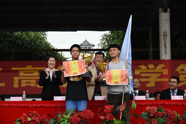 总裁判长宁春龙老师宣布了本次校运会获得团体总分前三名的班级,他们分别是:三等奖:初二(11)班和高三(3)班;二等奖:初二(12)班和高一(4)班;一等奖:初三(6)班和高二(2)班。黄尚泽董事长和杨敏校长为获奖班级颁发了奖状和奖杯。接下来,高文广常务副校长对本次校运会做了总结。高常务首先对在本次比赛中获奖的同学和班级表示祝贺,并对在本次校运会付出辛勤劳动的裁判员、工作人员表示衷心的感谢。在运动会中我们看到了同学们奋勇争先、顽强拼搏的精神,看到各个班级团结一致、齐心协力为班级荣誉而战情景,一幕幕都令人感动万分。高常务希望同学们把今天在运动场上的拼博精神带入到今后的学习中,争取学习上的更大进步!