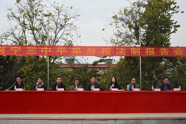 为了增强学生法律意识,提高学生法律知识,营造文明、平安、和谐的校园育人环境,12月26日下午,在学校操场,卢月益律师为我校师生举行了一场生动的法制教育讲座。出席讲座的领导有黄尚泽董事长、杨敏校长、黄春彬副校长及各部门中层领导。讲座由罗维新书记主持。