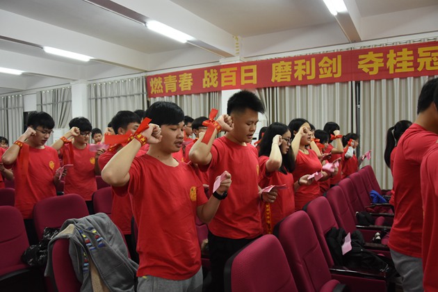 大会议程的第六项,高三各班依次宣誓。学生们把自己的决心和信心化成了一句句誓言,在激昂的宣誓中,再一次坚定了为高考奋力拼搏的决心和高考必胜的信心!