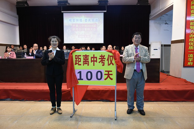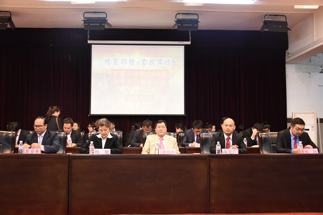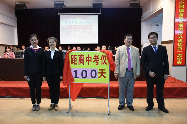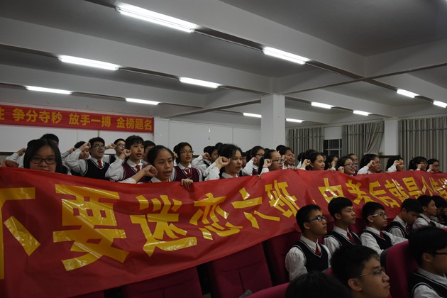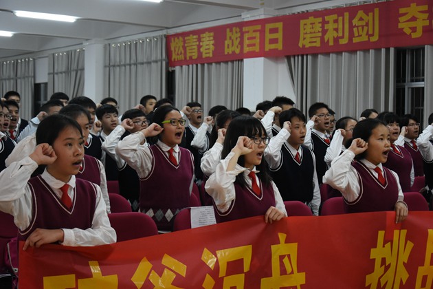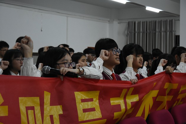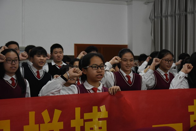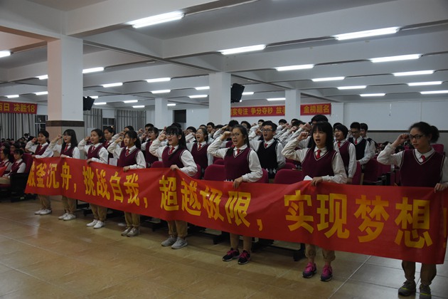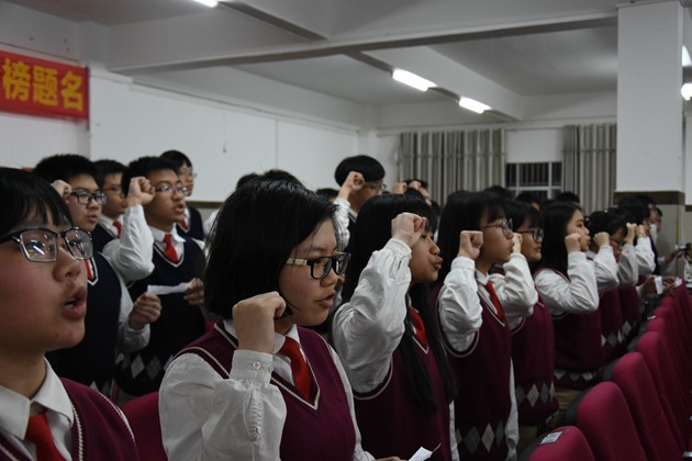 3月13日晚7点30分,我校在报告厅隆重举行初2018届中考百日冲刺誓师大会。出席大会的领导有黄尚泽董事长、杨敏校长、高文广常务副校长、黄春彬副校长以及学校各部门主任,初三全体教师和学生。大会由科研处主任阮国辉老师主持。