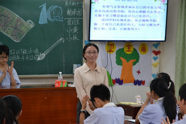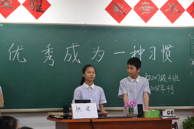 今天进行的是“主题班会课比赛”。各班班会课的主题都各具特色,班会课的举办形式也是丰富多彩。有的班主任组织学生以小品、表演的形式来演绎班会课的主体。同学们生动而诙谐的表演还引来评委们的阵阵笑声。有的班主任则是邀请同学们以演讲、分享的方式来展开班会课的主体。因为有班主任的栽培与鼓励,同学们站在讲台都能毫不畏惧,侃侃而谈。