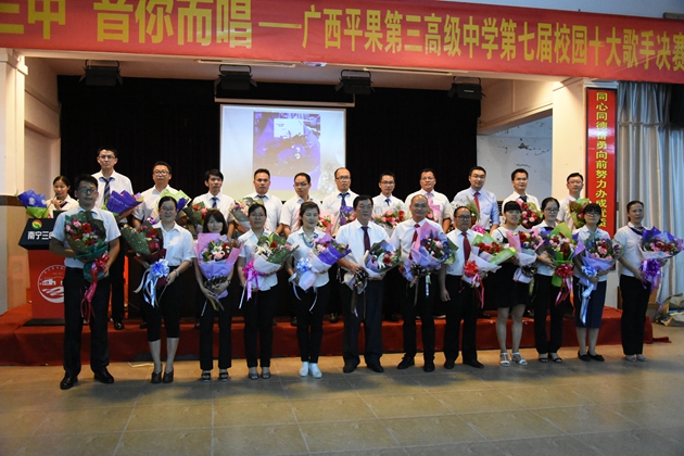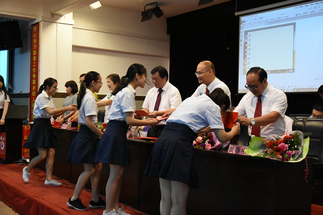 大会的第四项议程,由学生代表给高三老师献花。通过一朵朵美丽的鲜花传递了同学们对老师的深深感谢和诚挚的祝福。