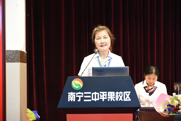 大会的第五项议程,家长代表发言。首先是家长代表黎雪女士发言。黎雪女士代表全体家长向一直以来关心同学成长付出心血、汗水和智慧的学校领导和老师们表示感谢。在高考即将到来之际,黎雪女士希望同学们以平常心对待高考,只要已经拼尽全力,不管结果如果,我们都无悔于我们的高中生涯。其次是家长代表黄国伦先生发言。黄国伦先生也对辛勤付出的老师们表示感谢,同时也对学生们表示祝贺。黄先生还希望今后同学们无论到了哪里都不要忘了心怀感恩,无论何时都要有责任担当,并且对生活能有所思考。最后,黄先生祝同学们金榜题名,平果三中高考再创辉煌!