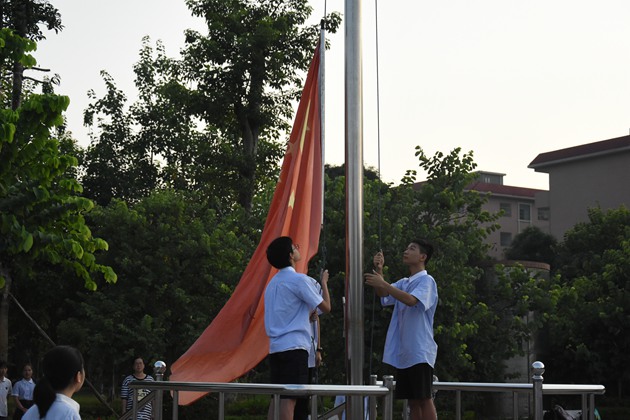 首先举行升国旗奏唱国歌仪式;升旗仪式结束后全体参会人员向圣师孔子行礼。接着,进行60万元奖学金的颁奖仪式。颁奖仪式上,黄尚泽董事长和杨敏校长为贺钰盈同学颁发了奖学金,其中,黄尚泽董事长奖励50万元,学校奖励10万元,共计60万元奖学金。