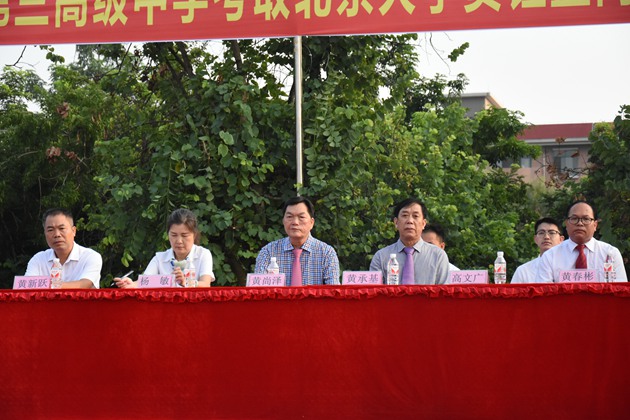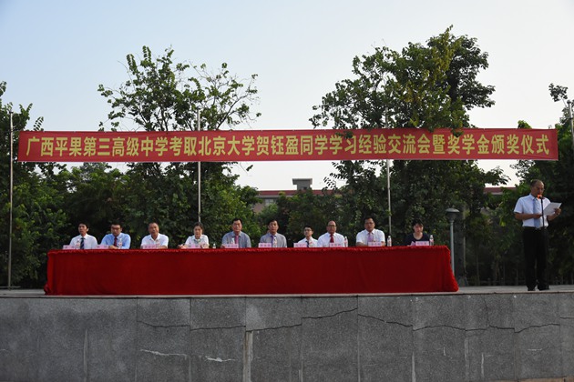 最后,由黄尚泽董事长致辞。黄尚泽董事长对贺钰盈同学考上北京大学表示祝贺!同时黄尚泽董事长还表示,希望同学们在今后的学习生活中能够学习贺钰盈同学勤奋刻苦的学习态度,勇于拼博、勇攀高峰的学习精神,坚忍不拔、坚持不懈的意志力以及艰苦奋斗的作风!让我们继续奋斗、加倍奋斗、不懈奋斗,继续书写平果三中新篇章!