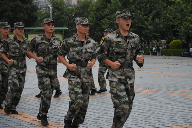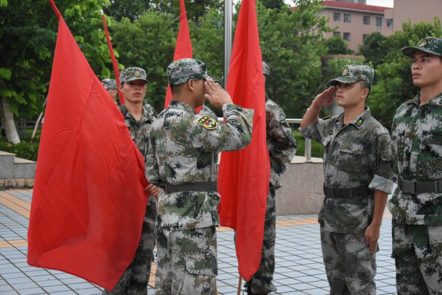 之后,参与本次军训带队的教官们给在场的领导和师生们做了风采展示。他们的步伐整齐划一,他们的声音铿锵有力,不少学生为教官们的精彩展示发出阵阵喝彩。风采展示结束后陈健龙总教官对带班教官进行了任命并授旗。