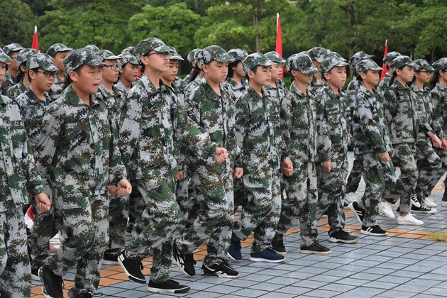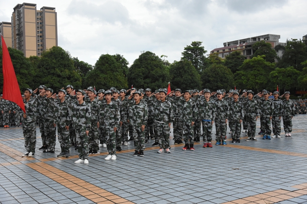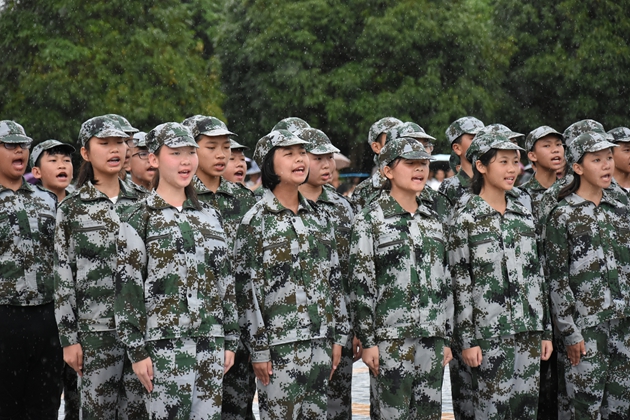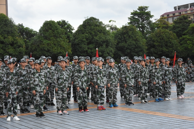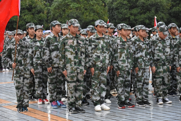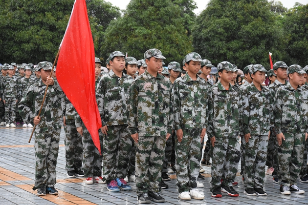 虽然天空下着雨,但是也阻挡不了同学们的活力与热情,同学们在教官的带领下按原计划进行各项汇报表演。汇演的内容有整队、立正、稍息、跨立;停止间四面转法;蹲下与起立;齐步行进与立定; 跑立步行进与定等。在汇演过程中,同学们充满激情:走齐步,他们整齐划一;走正步,他们步履矫健;敬军礼,他们动作标准;喊口号,他们声音嘹亮。他们迈着整齐的步伐,以高昂的士气依次接受学校领导的检阅,充分展示了同学们朝气蓬勃、奋发向上的精神风貌。在短短的5天时间里,同学们相互帮助,相互鼓励,共同进步,体验了艰苦严格,丰富多彩的军事生活,同时磨练了同学们钢铁般的意志,炼就了同学们军人般的气质。经过5天的锻炼,同生们学会了独立,获得了成长,更有信心迎接初中、高中的学习和生活!