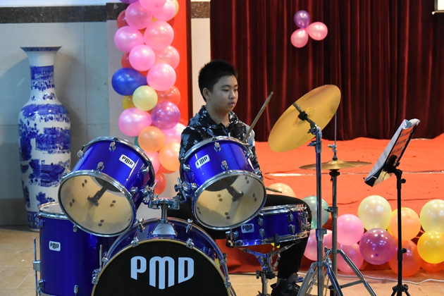 本次比赛共有十六个参赛节目。初一(10)班张鹤严同学用架子鼓,敲开了本场比赛的序幕。初三(8)班的同学们带来的舞蹈《EiEi+海草舞》活泼可爱,彰显了现代中学生的魅力;初一(2)班的黄晓渭同学用钢琴弹奏《faded》俘获了现场观众们的心;高一(6)班的童晓程则用架子鼓,再一次将现场的气氛推向了高潮。接下来充满激情的朗诵、悦耳动听的古筝弹奏、柔中带刚的拉丁舞、动感十足的街舞、展现民族特色的独舞和充满中国风的群舞等等都赢得同学们的阵阵喝彩声。