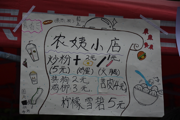 校园里美食一条街随处可听见同学们激情饱满的叫卖声。为了此次美食嘉年华,各班在班主任的安排下,前期做了充分而细致的准备,精心设计和布置了班级摊位,准备大显身手,拿出自己的招牌美食。特色烧烤、炸鸡排、肉夹馍、爆米花、炒面、煮馄饨、香豆腐、甜点等等各色美食无不“勾引”着吃货们的味蕾,令人垂涎欲滴。到处是气球和鲜花,到处欢声笑语,在弥漫着各色美食气息中,美食一条街开展得有声有色。相信校园里的小吃货们一定能在美食一条街中一饱口福!