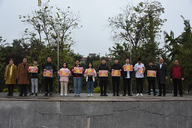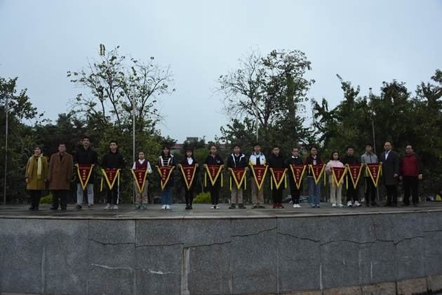 校领导黄尚泽董事长、杨敏校长、高文广常务副校长、黄春彬副校长为获奖班级颁发了锦旗。