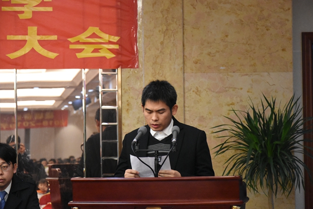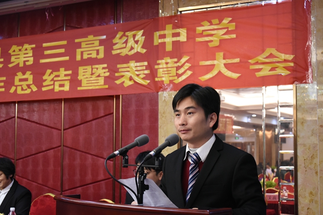 大会议程的第三项,由黄尚泽董事长致辞。黄董事长首先向一向关心、支持、帮助我校发展的县委、县政府、县教育局、兄弟单位和社会各界友人表示衷心地感谢!向在年终考核和“青年教师技能大赛”中获得嘉奖的各位的教职员工们表示祝贺!接着黄尚泽董事长就2018——2019学年度的工作做了总结。一年来学校各部门密切配合,相互支持,根据工作计划,充分发挥职能作用,工作效果良好、工作质量提高,形成奋发有为、团结协作的良好局面。一年来,学校各项工作扎实开展、有序推进,不断取得新进步!年级工作坚持紧抓教学质量这个核心,以良好习惯养成为教育的主攻方面,形成浓厚的学习氛围。班主任工作坚持坐班制度,认真组织、分层指导,加强教育教学的常规常态管理。推行班主任创新特色工作等管理措施,形成良好的班风、学风。教研组、备课组工作坚持用集体智慧共同研讨备课,确定教学目标、教学重点、教学特色,总结教法学法、质量分析等,教学质量明显提高。高考、中考备考工作目标明确、措施落实真抓实干,特别是在清、北尖子生的培养上,备考冲刺工作稳步开展,态势良好。新学期充满新挑战,我们一定要有所作为,要敢于乘风破浪,胜利驶向辉煌的彼岸!