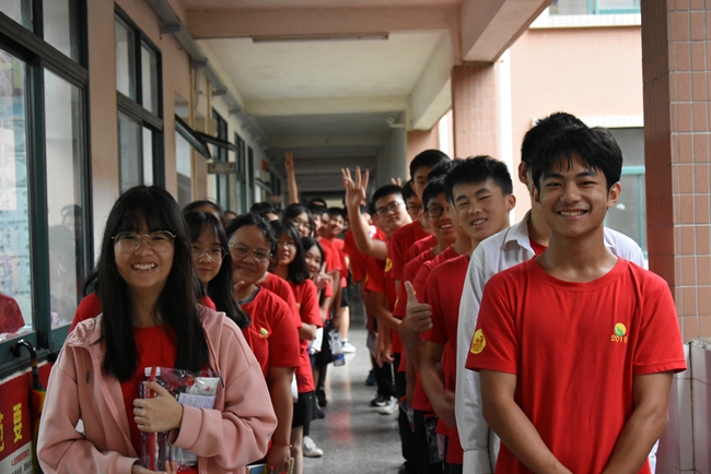 老师们在教学楼旁列队,和每一位走过“龙门”的同学握手、击掌,叮嘱他们要沉着自信,仔细答题,尽情发挥,祝福他们在中考中考出好成绩!