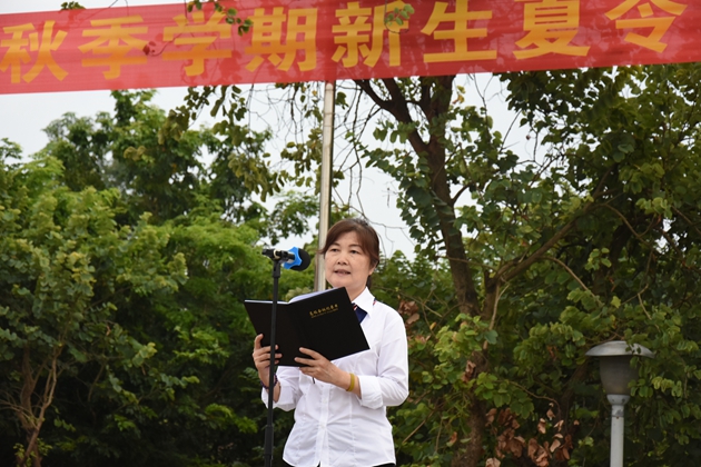 首先进行的是升旗仪式。随后杨敏校长为本次夏令营活动做总动员。杨敏校长首先对高一、初一年级新生的到来表示热烈欢迎。杨校长希望通过本次夏令营活动,让同学们体验到爱国、纪律、坚持、毅力、情谊、团结。随后,校长对同学们在军训中提出了五点要求:一是纪律严明、服从指挥。做到尊重教官,服从教官,一切行动听指挥;二是要严格训练、严格要求;三是要发扬军队的优良传统,团结协调、步调一致;四是高标准、严要求搞好内务卫生,养成良好的生活习惯;五是要树立安全意识,在训练中要做到科学训练。杨敏校长还要求所有班主任及教官都要按时到位,保证活动有序地开展。相信经过大家的努力,本次夏令营活动一定能圆满完成!