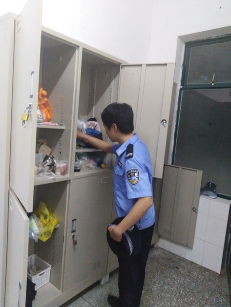 在检查过程中,要求学生主动地打开各自的箱子和柜子。然后接受民警和保卫人员的检查。民警们和保卫人员对宿舍的每一角落进行逐一排查,除了发现水果刀、剪刀、扑克牌等学校不准带来的物品外,没有发现管制刀具。针对发现不准带进校园的物品,检查人员和班主任进行了没收,并进行了批评教育。