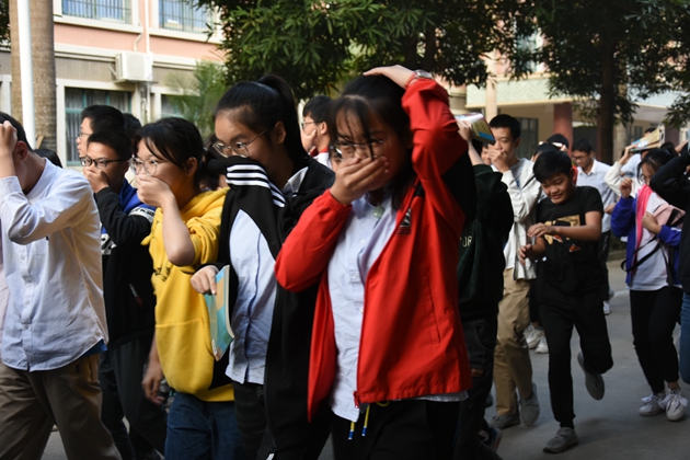 我校进行避震、消防安全演练