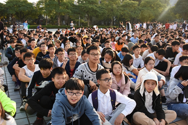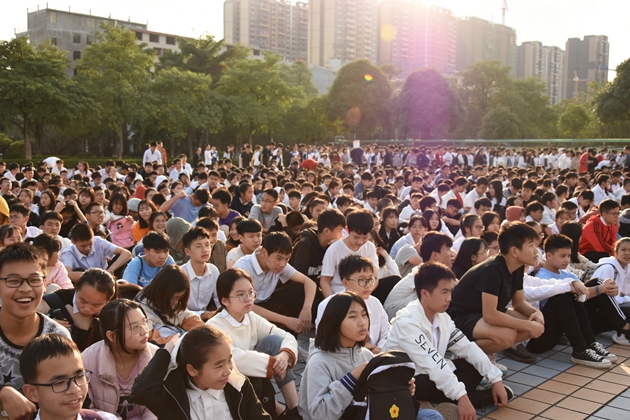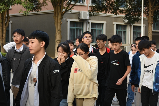 同学们有序撤离前往操场