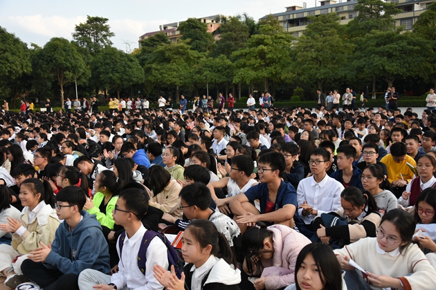 县消防大队江南中队凌斌指导员给全校师生讲解消防安全知识