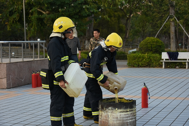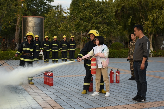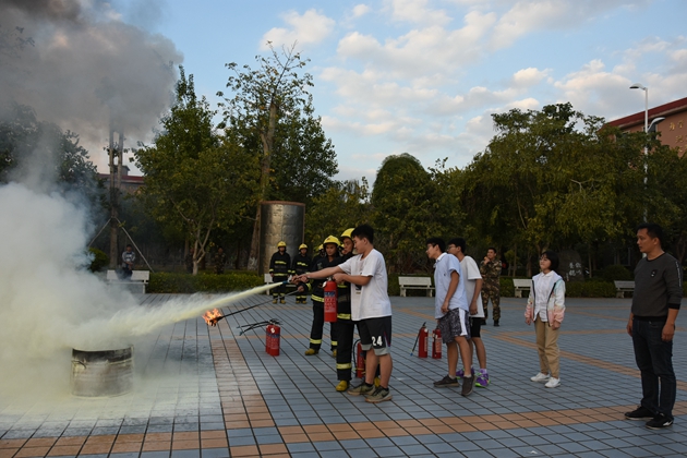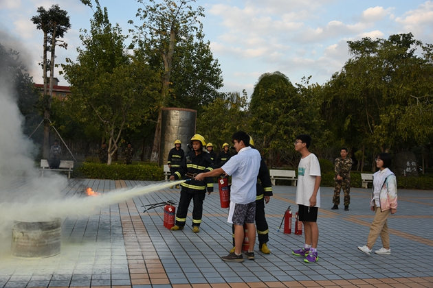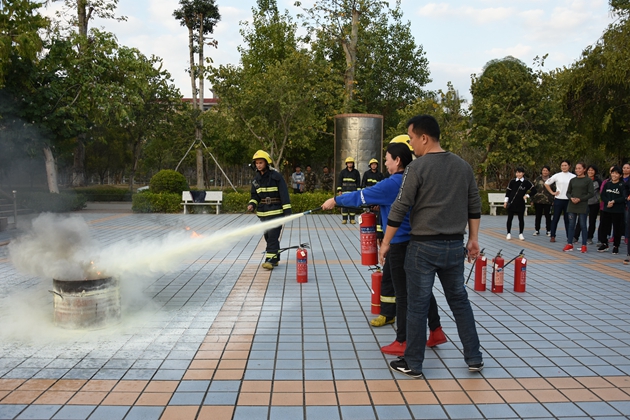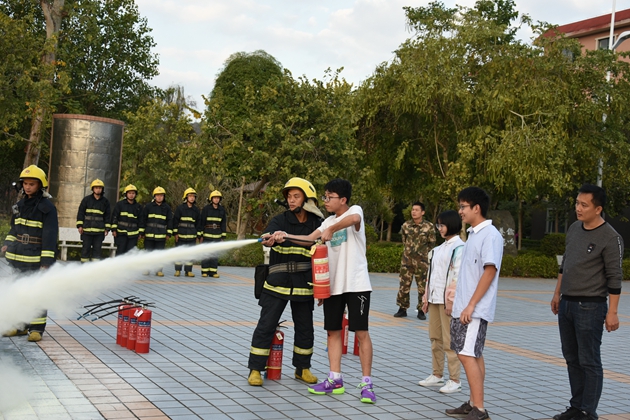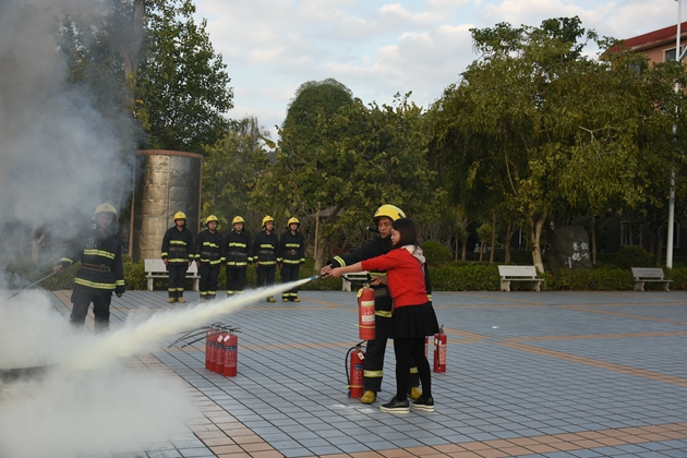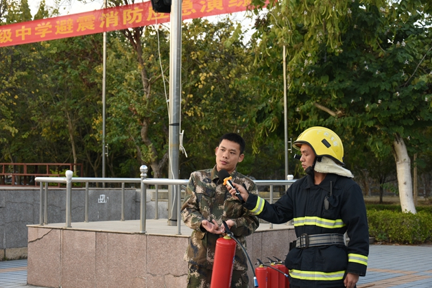到达操场后,校党支部书记罗维新老师首先就疏散情况做了小结。罗书记对学生们演练的表现表示肯定,并对学生们传授了一些关于地震、火灾时的安全知识,告诉大家灾难来临应保持沉着冷静,在日常生活中也应减少安全隐患,防患于未来。接着由县消防大队江南中队凌斌指导员给全校师生讲解一些关于如何灭火的知识,他结合典型的火灾案例,用通俗易懂、贴近生活的语言向大家详细讲解了校园中发生火灾或其它突发事件时如何逃生避险,以及如何报火警、如何使用灭火器和如何扑救初期火灾等知识,提醒师生们把消防知识应用到实际生活中去,时刻提高警惕,千万不可麻痹大意。演练的最后,还邀请学校保卫科的工作人员和生活老师、学生代表亲自使用了灭火器进行灭火演示。