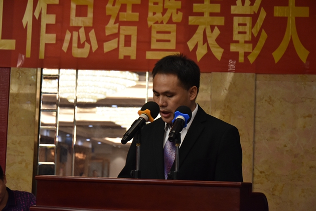 大会议程的第四项,由县教育局陆良根副局长讲话。陆副局长首先感谢黄尚泽董事长热衷教育事业,感谢平果三中对平果教育的做出的巨大贡献;二是祝贺获奖的老师们,希望大家不忘初心,再接再厉,取得更大的成绩;三是希望我校全体教职员工在新的一年里精诚团结、踏实奋进、共同书写平果三中新的辉煌!