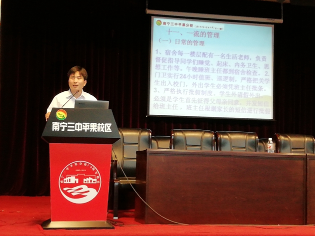 接着年级组组长阮国辉主任发表讲话,主要介绍目前学校取得的成绩,并对学生寄予厚望、提出新的要求,他希望学生们能在原有的辉煌中取得更大的进步!同时阮国辉主任还强调了学校的日常管理规范,希望同学们在新的起点,新的生活中勇敢迎接挑战。