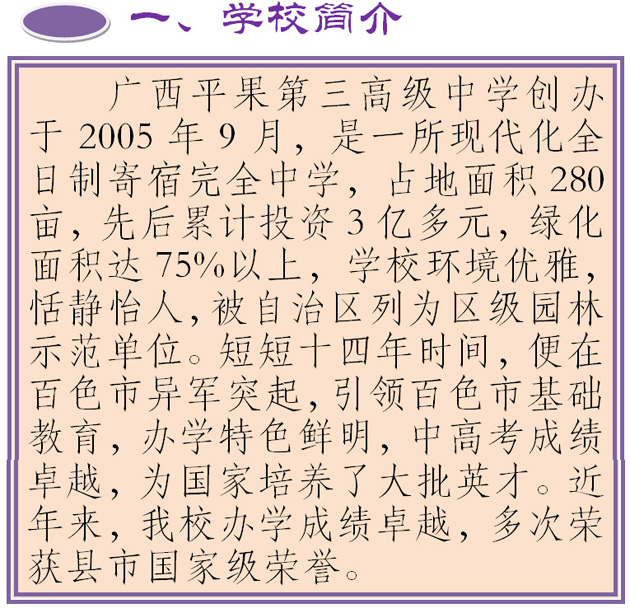 学校地址:广西平果县三中路 邮政编码:531400 联系电话:0776-5886129 0776-5886159