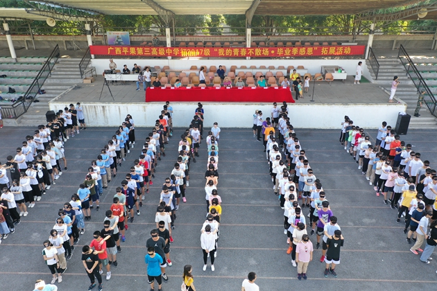 在中考即将到来之际,为了让初三年级的同学们减压,以最好的状态迎接中考的到来。7月14日下行4:30,我校初三年级全体师生在学校田径场举行“我的青春不散场·毕业季感恩”素质拓展活动。出席本次活动的学校领导有黄尚泽董事长、杨敏校长、高文广常务副校长、黄春彬副校长、杨琦副校长、黄伟副校长及中层正职领导。