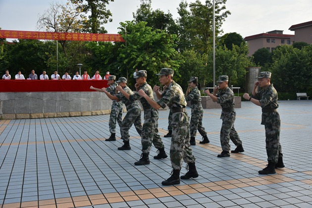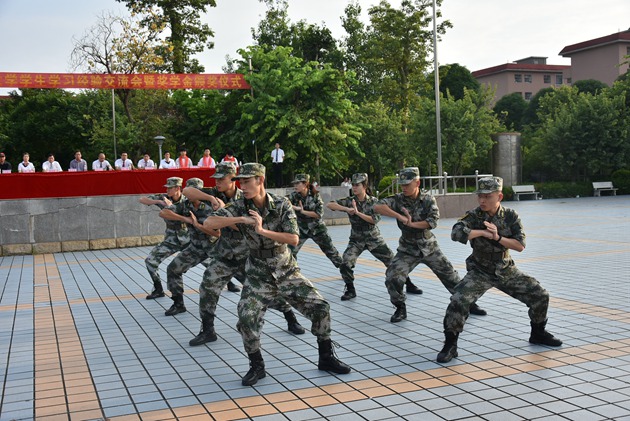 之后,参与本次军训带队的教官们给在场的领导和师生们做了风采展示。他们的步伐整齐划一,他们的声音铿锵有力,不少学生为教官们的精彩展示发出阵阵喝彩。