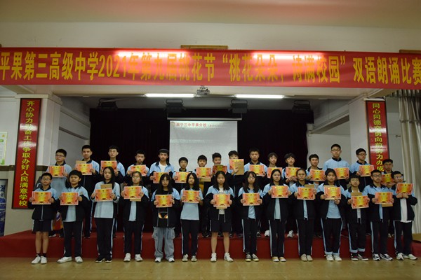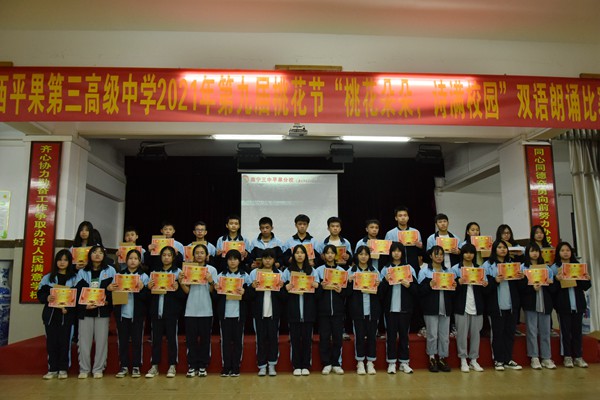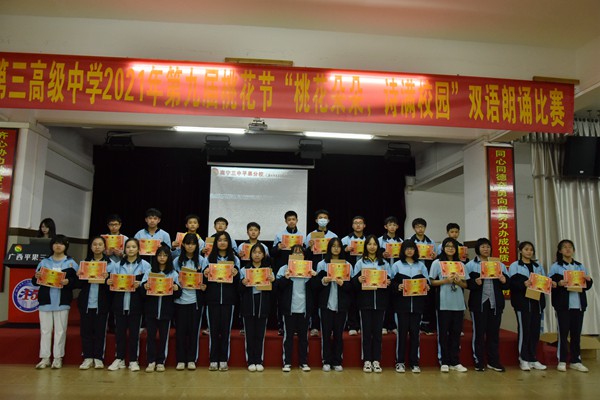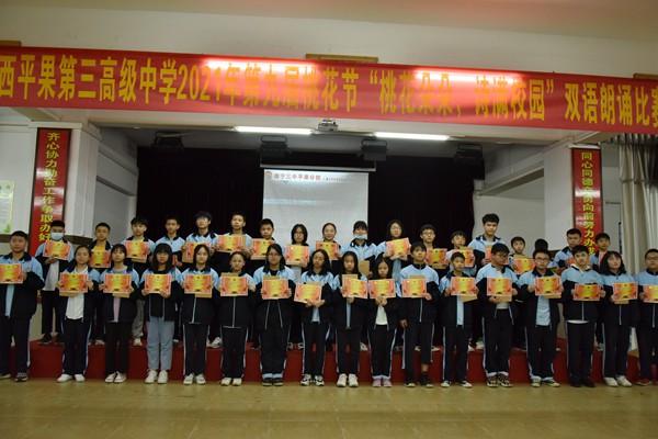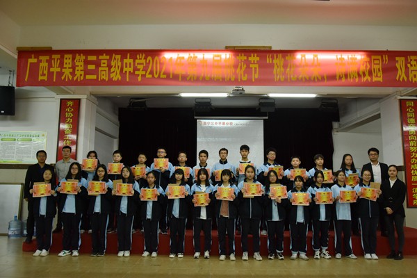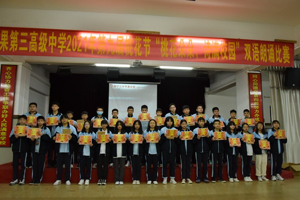 年级教师给获奖学生颁奖