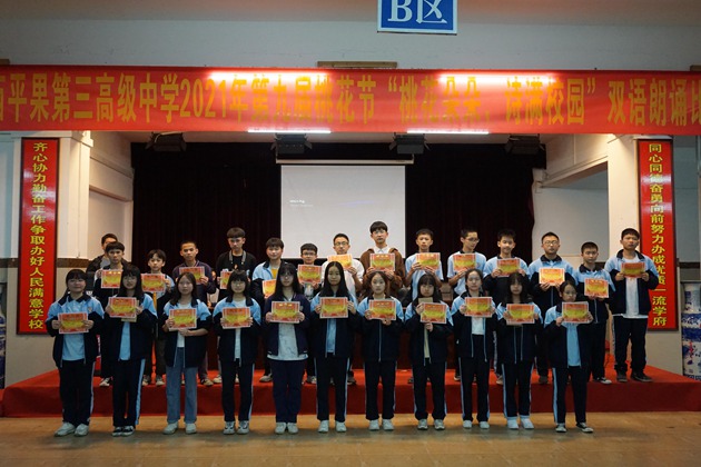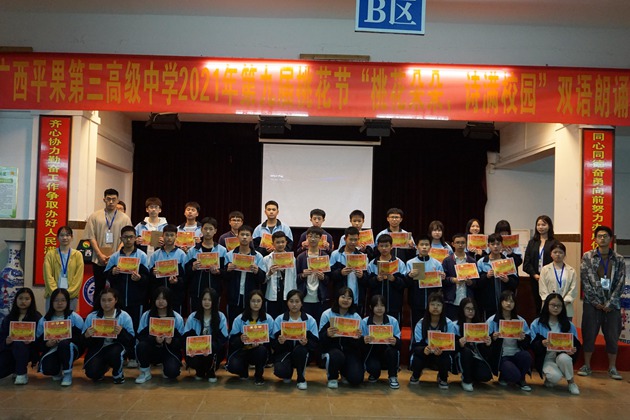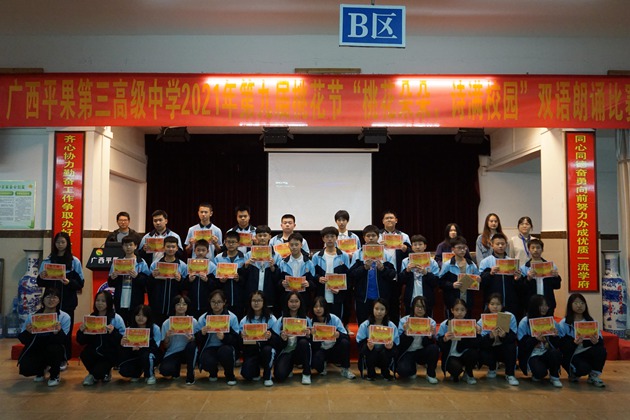 2021年4月18日晚,初2019级在我校报告厅召开第一次月考表彰大会暨段考、中考动员会,莅临大会的各位领导18luck娱乐黄春彬副校长,舍管处主任李华强老师、年级组长熊建新老师、年级副组长班兆宇老师、年级副组长莫裕秋老师以及年级科任老师和来自广西师范大学的14位实习老师们。