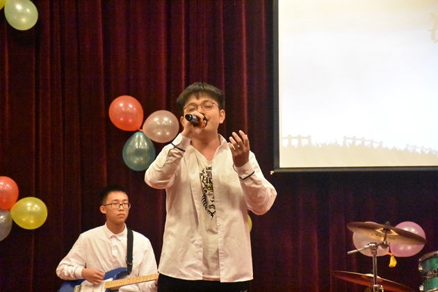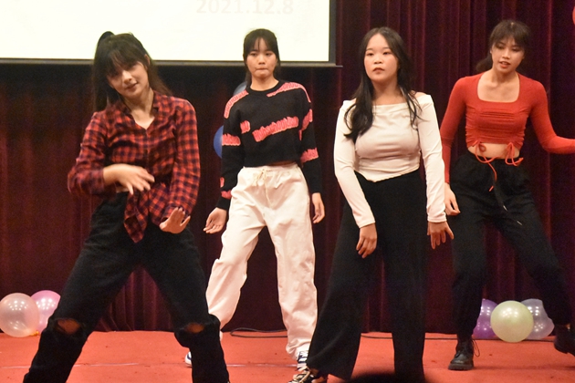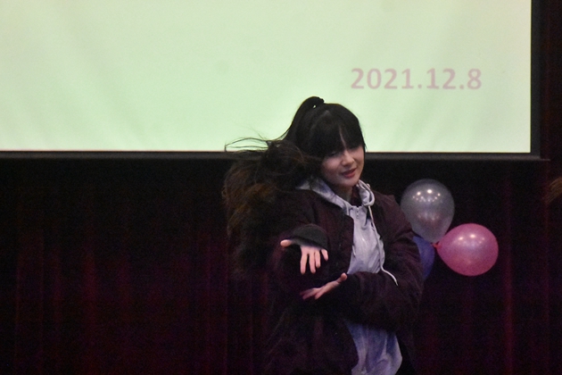 本次比赛共有十二个参赛节目。高二(2)班的农惠清同学以一支古香古色的舞蹈《长安十二时辰》拉开了比赛的帷幕,爵士舞《我们俩》带动了全场的气氛;接下来潇洒律动的架子鼓、俏皮可爱的群舞、柔中带刚的拉丁舞、动感十足的街舞、满怀深情的朗读、醋劲十足的吉他弹唱均都赢得同学们的阵阵喝彩声。