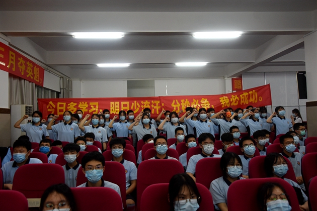 中考的战场,主角永远是初三的学子!12班黄婧霖同学作为学生代表表达了自己的心声:有志者事竟成,破釜沉舟,百二秦关终属楚;苦心人天不负,卧薪尝胆,三千越甲可吞吴。黄婧霖同学从反思往日学习、提高学习效率等方面总结了学习方法,期望与“”战友们”一起科学备考、圆梦六月!誓战高昂意,澎湃学子心。