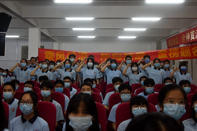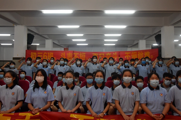 杨敏校长号召全体同学树立必胜信心,排除一切干扰,认真备考,以良好的心态迎接中考。她期望初三全体师生凝聚全部力量,以坚定的信心、顽强的意志和科学的方法全力以赴地提升实力,去摘取成功的硕果,铸就平果三中的辉煌!