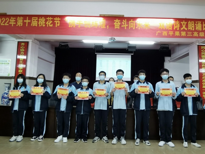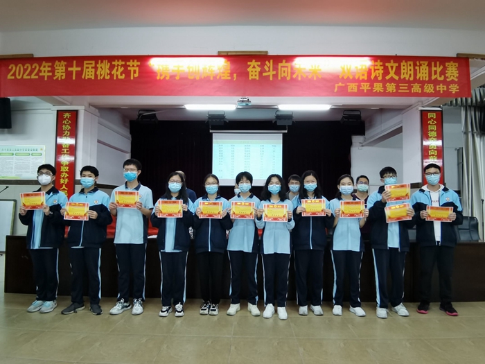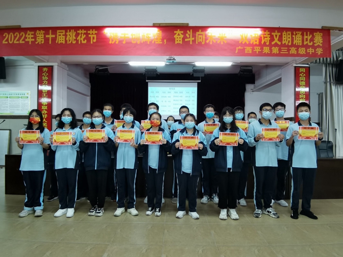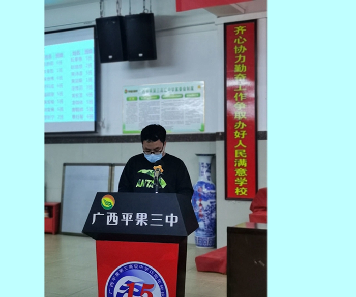 年级领导庞雁老师对全年级同学提出期望:一是做到感恩与互信,专心向学,把个人理想的实现融入到国家复兴富强的时代洪流中。二是做到守心自律,团结拼搏,在全年级形成争先创优的氛围。三是向上向阳,共克时艰,提升抗压力,刻苦努力,在即将到来的4月份广西“三新”联考中斩获佳绩,展现三中精神!