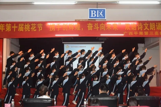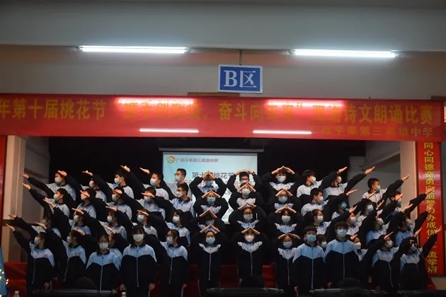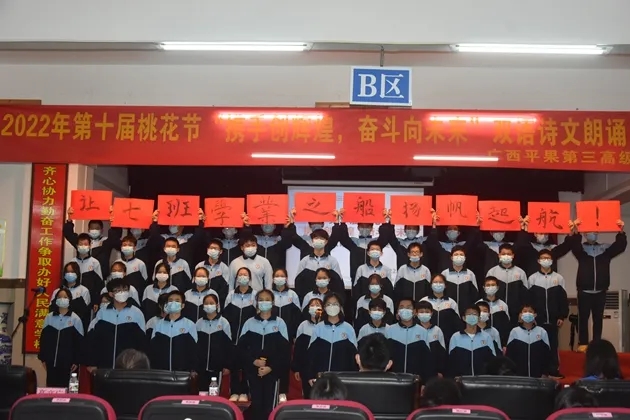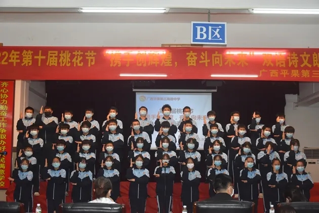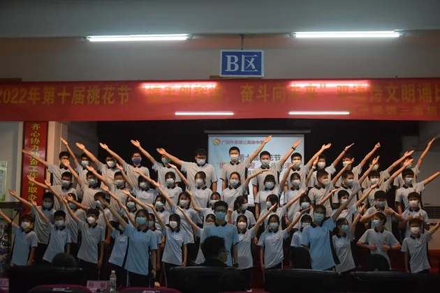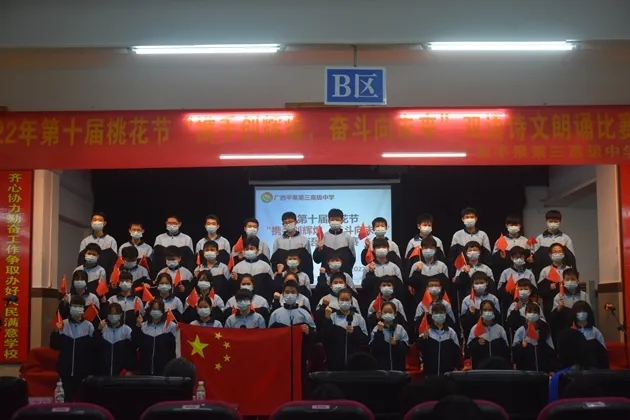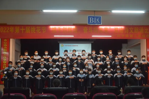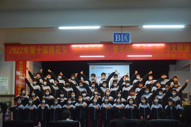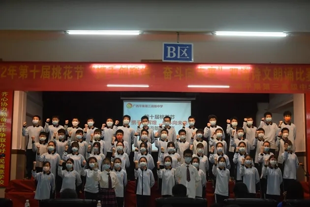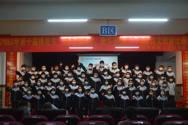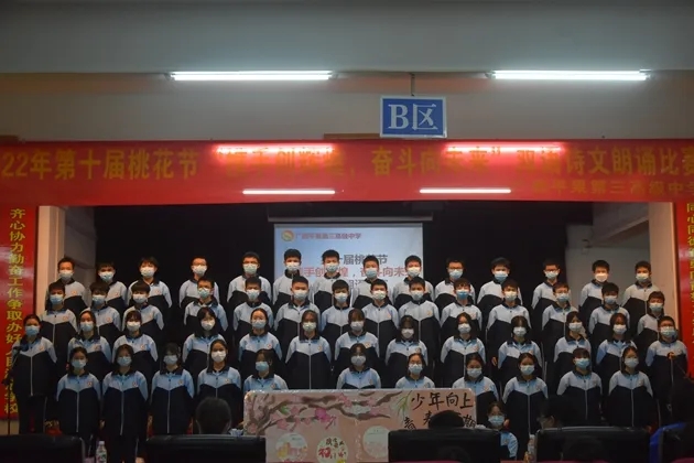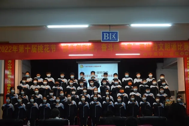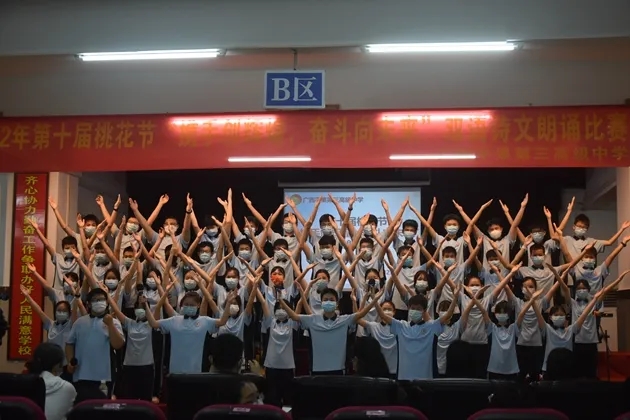 琴声淡去,语音袅袅,诗词吟罢,口留清香。诗词是无际的海,朝向它,可遥看春暖花开。把诗词植入校园,校园就是指点江山,激扬文字的人文之都。2022年3月30日晚,初2021级的孩子们在报告厅举行了第十届桃花节之“携手创辉煌,奋斗向未来”双语朗诵比赛。莅临现场的有学校的各位领导和英语组、语文组的评委老师们。