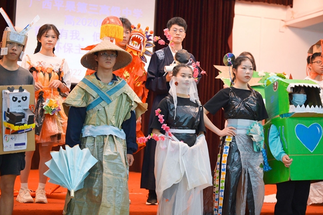 经过两周的构思、设计、选材和制作,各班独具特色的吉祥物和时尚酷飒的环保时装作品,终于在观众眼前纷纷亮相。