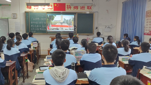 即使隔着屏幕,少先队员献唱的《义勇军进行曲》依然使同学们心潮澎湃,激动不已,真正感受到了祖国的繁荣昌盛。